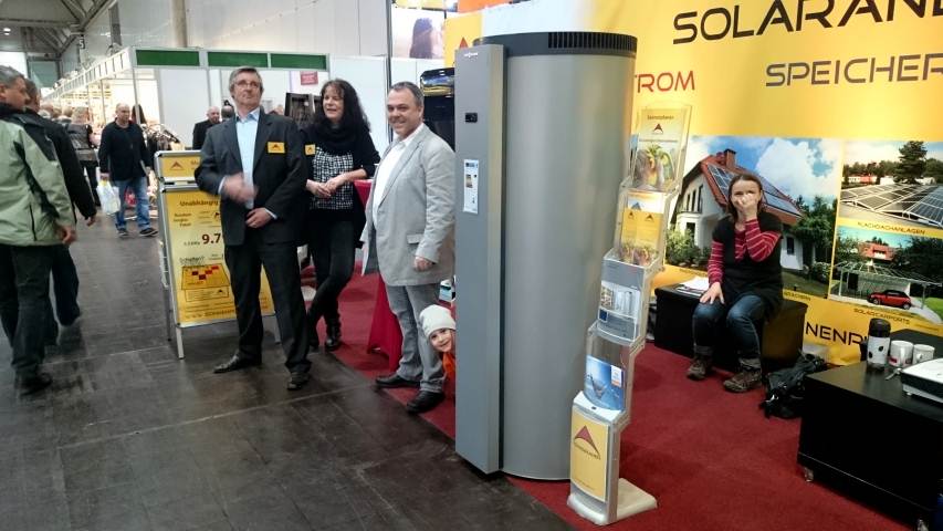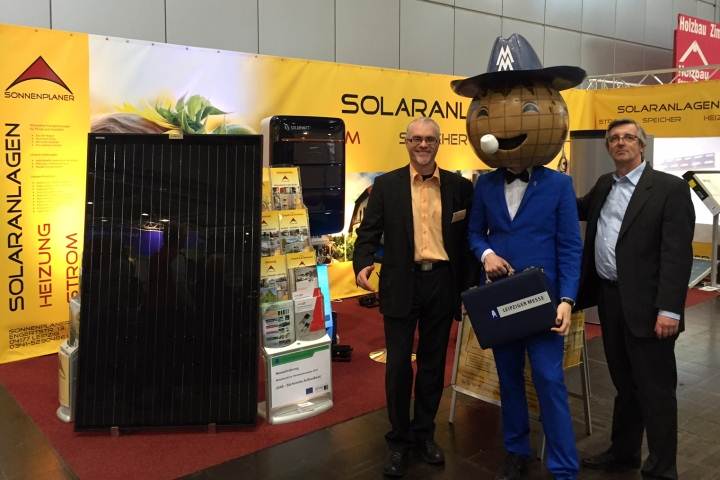 Sonnabend - vorletzter Tag. Gut gerüstet stellen sich vier Sonnenplanermusketiere dem Ansturm der Wissensdurstigen. Wie erwartet füllt sich unsere Halle schnell. Viele Bekannte, Bestandskunden und sogar noch Außendienstler unserer Lieferanten besuchen uns. So auch Rainer - Mr. Krannich und Mathias - Mr. Tesvolt. Mathias lässt es sich nicht nehmen und steigt voller Elan für zwei gute Stunden mit in die Kundenberatung ein. Für Tesvolt - den ultimativen Großspeicherspezialisten aus Wittenberg. Das ist Einsatz - immerhin ist ja Wochenende! Die Zeit vergeht wie im Flug.